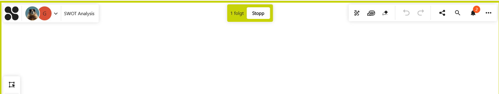 Wenn ein Moderator die Funktion „Aufmerksamkeit erhalten“ aktiviert und Du ihm folgst, verändert sich auch Deine Ansicht auf dem Whiteboard: