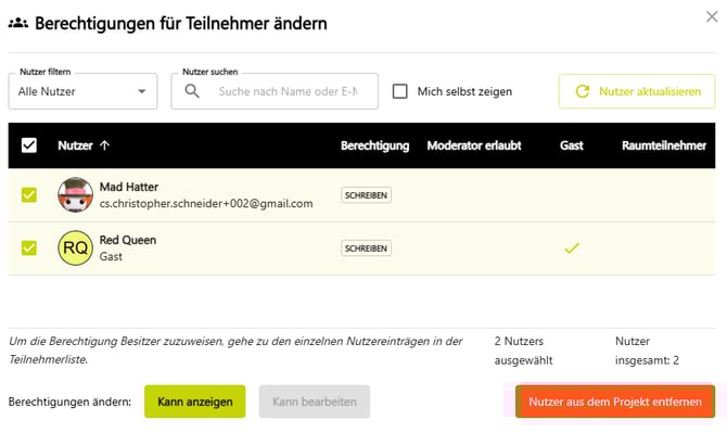 Berechtigungen der Teilnehmenden ändern