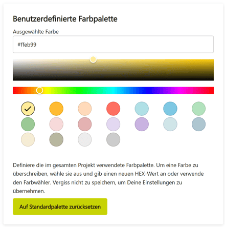 Du kannst die Farbpalette jederzeit wieder auf die Standardwerte zurücksetzen.