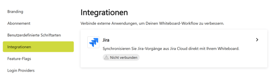 Sobald die Integration aktiv ist, kann jede Person ihr eigenes Jira-Konto mit Collaboard verbinden.