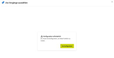 Wenn Jira noch nicht konfiguriert ist, klicke auf das Jira-Icon auf dem Board. Es erscheint ein Hinweis, dass eine Konfiguration erforderlich ist.