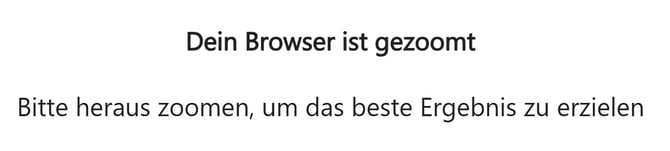 Wenn die folgende Fehlermeldung angezeigt wird, ist der Zoom-Level Deines Browsers zu niedrig oder zu hoch. Da Collaboard für diese Zoomstufe nicht optimiert ist, musst Du den Zoom anpassen, um weiterarbeiten zu können.