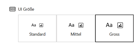 Es stehen drei Größen zur Verfügung: „Standard“, „Mittel“ und „Groß“.