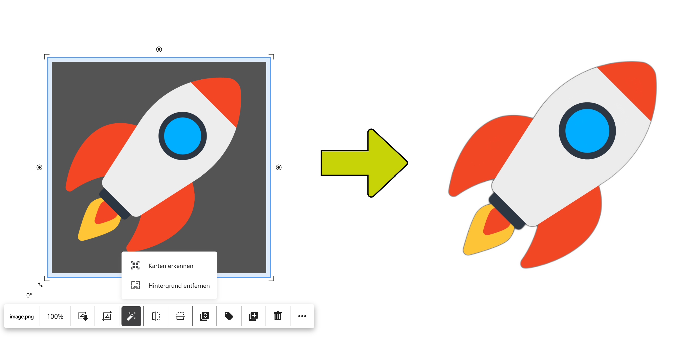 Die Funktion Hintergrund von Bildern entfernen nutzt Künstliche Intelligenz (KI), um automatisch den Hintergrund eines Bildes zu erkennen und zu entfernen.