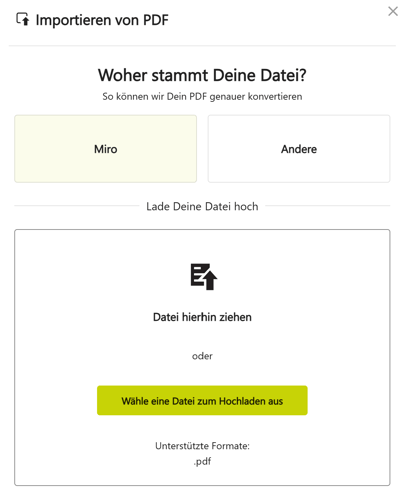 Lade die exportierte Miro-Vektordatei (PDF) von deinem Computer hoch.