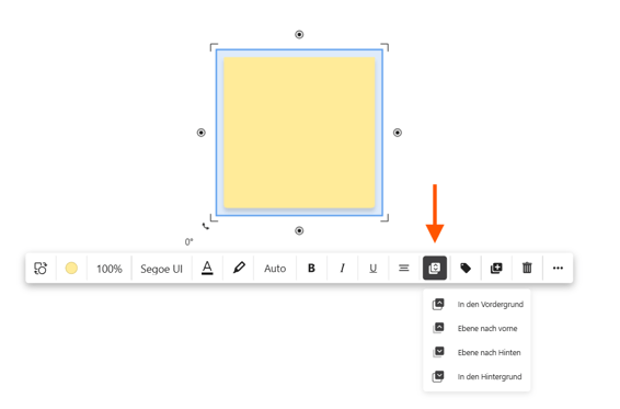 In Collaboard kannst Du Objekte in verschiedenen Ebenen anordnen. So steuerst Du, welches Objekt im Vordergrund oder im Hintergrund angezeigt wird.