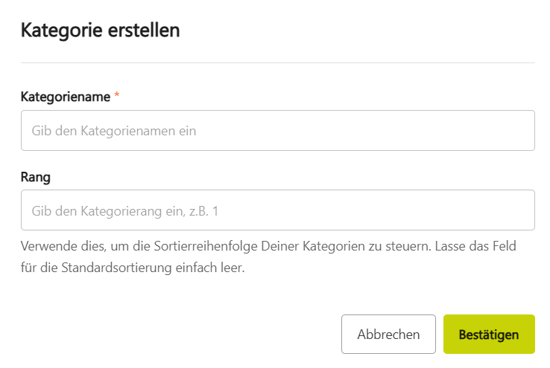 Admins (Abonnement Besitzer und Manager) können diese Kategorien unter den Einstellungen erstellen.