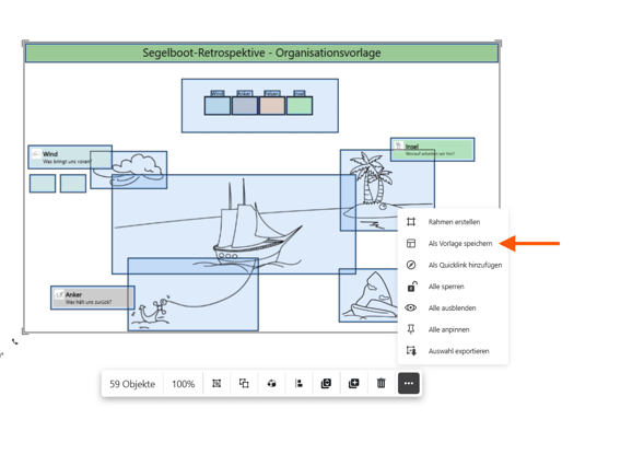 Wähle die Objekte auf deinem Whiteboard aus, die du als Vorlage speichern möchtest.