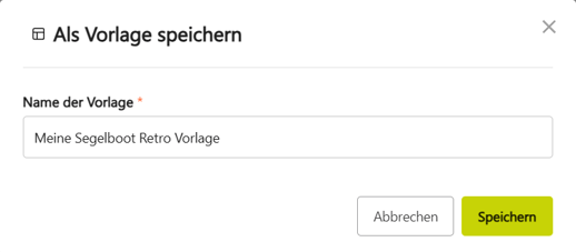 Vergib einen Namen und speichere die Vorlage