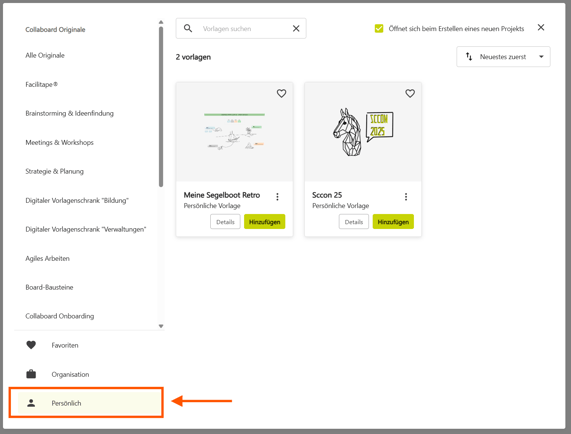 Im Bereich Persönliche Vorlagen kannst du deine eigenen Vorlagen verwalten.