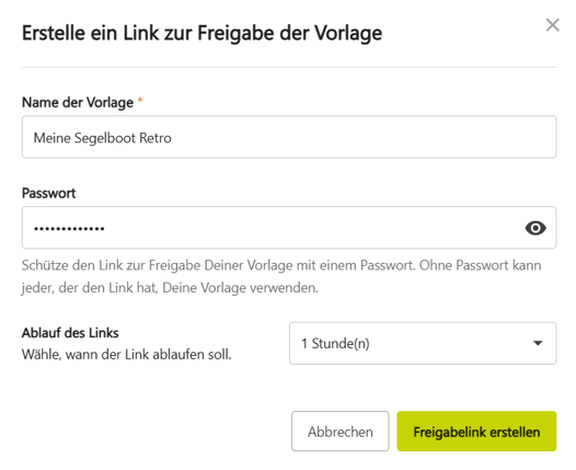 Vorlagen per Freigabelink teilen