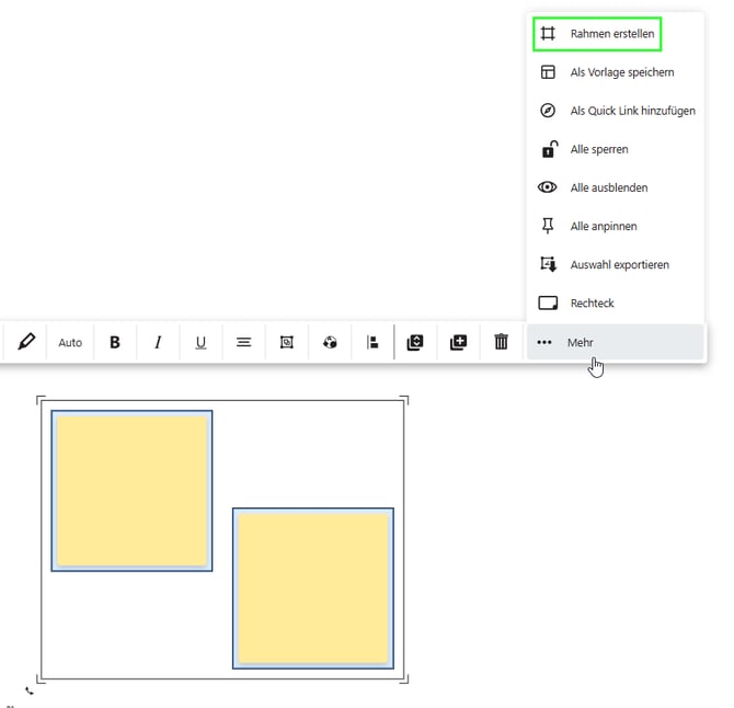 Jeder Frame hat das bekannte „Mehr“-Kontextmenü, das du auch von anderen Objekten wie Notizen oder Bildern kennst.
