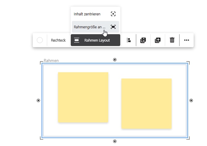 Wähle „An Inhalt anpassen“ im Kontextmenü des Frames, um die Frame-Größe auf die Größe seines Inhalts zu verkleinern: