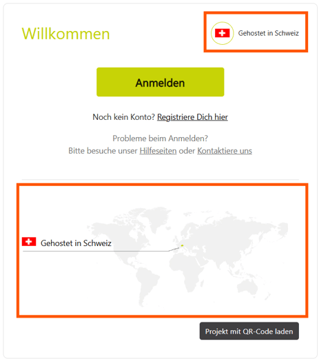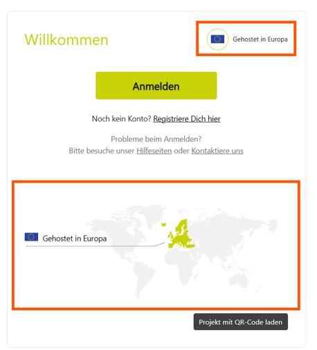 Wenn du Probleme beim Login hast, überprüfe bitte zuerst, ob du dich in der richtigen Umgebung befindest. Beim Login wird oben links eine Länderflagge angezeigt, die die jeweilige Hosting-Umgebung kennzeichnet.