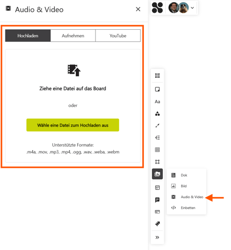 Lade eine Videodatei hoch oder ziehe sie per Drag & Drop direkt auf das Whiteboard.