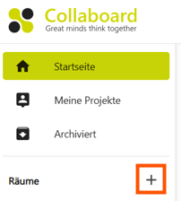 - Klicke links im Dashboard im Bereich Räume auf das Plus Symbol.