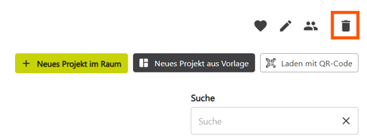 Beim Löschen eines Raums verlieren alle Mitglieder den Zugriff auf die darin enthaltenen Projekte (Whiteboards). Stelle sicher, dass wichtige Projekte (Whiteboards) zuvor gesichert oder in einen anderen Raum verschoben wurden.