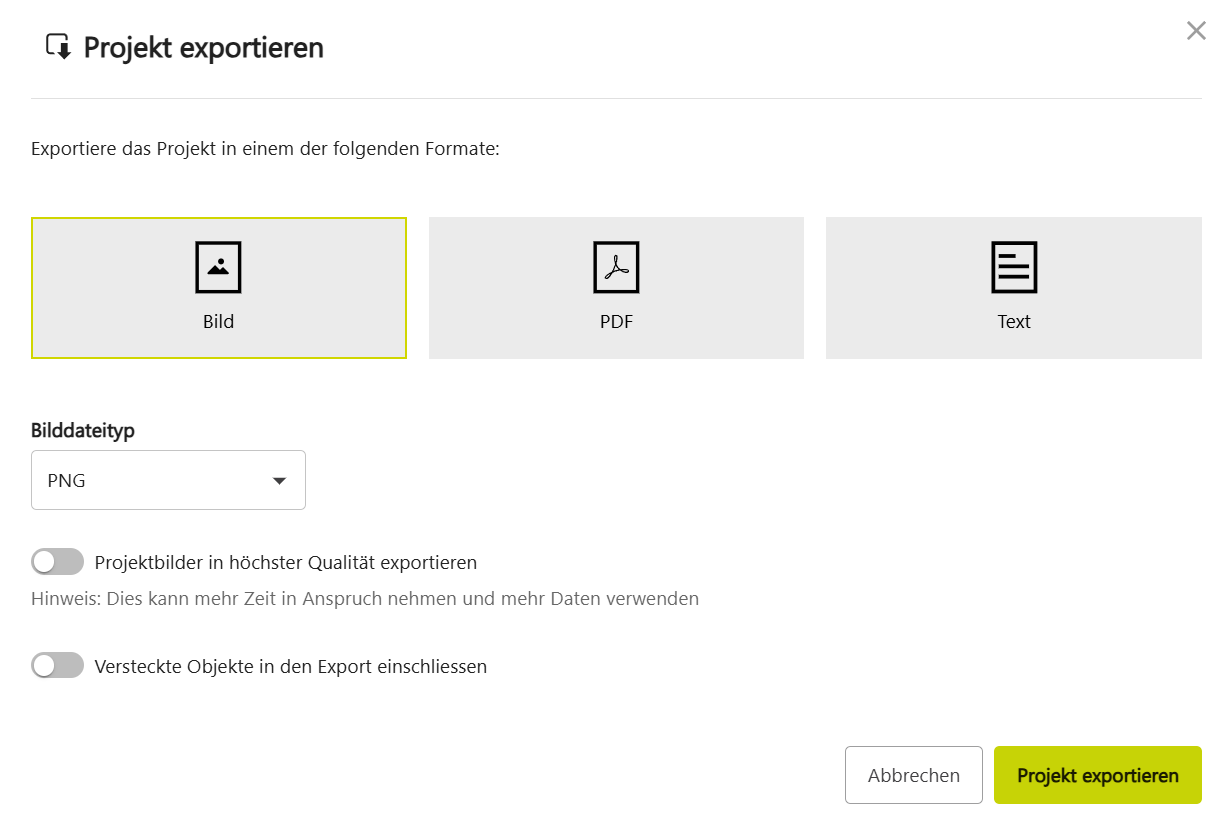 Beim Export werden alle aktuell sichtbaren Elemente auf dem Board berücksichtigt.