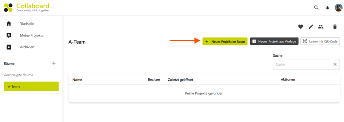In Collaboard kannst Du Projekte (Whiteboards) direkt in Räumen erstellen, verschieben und organisieren. Räume helfen Dir dabei, den Zugriff für Teams zentral zu steuern.