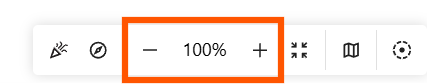 - Klicke unten rechts auf + oder -, um die Zoomstufe anzupassen.