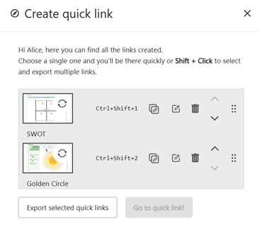 Before exporting, you can define how the Quick Links will appear in the PDF.