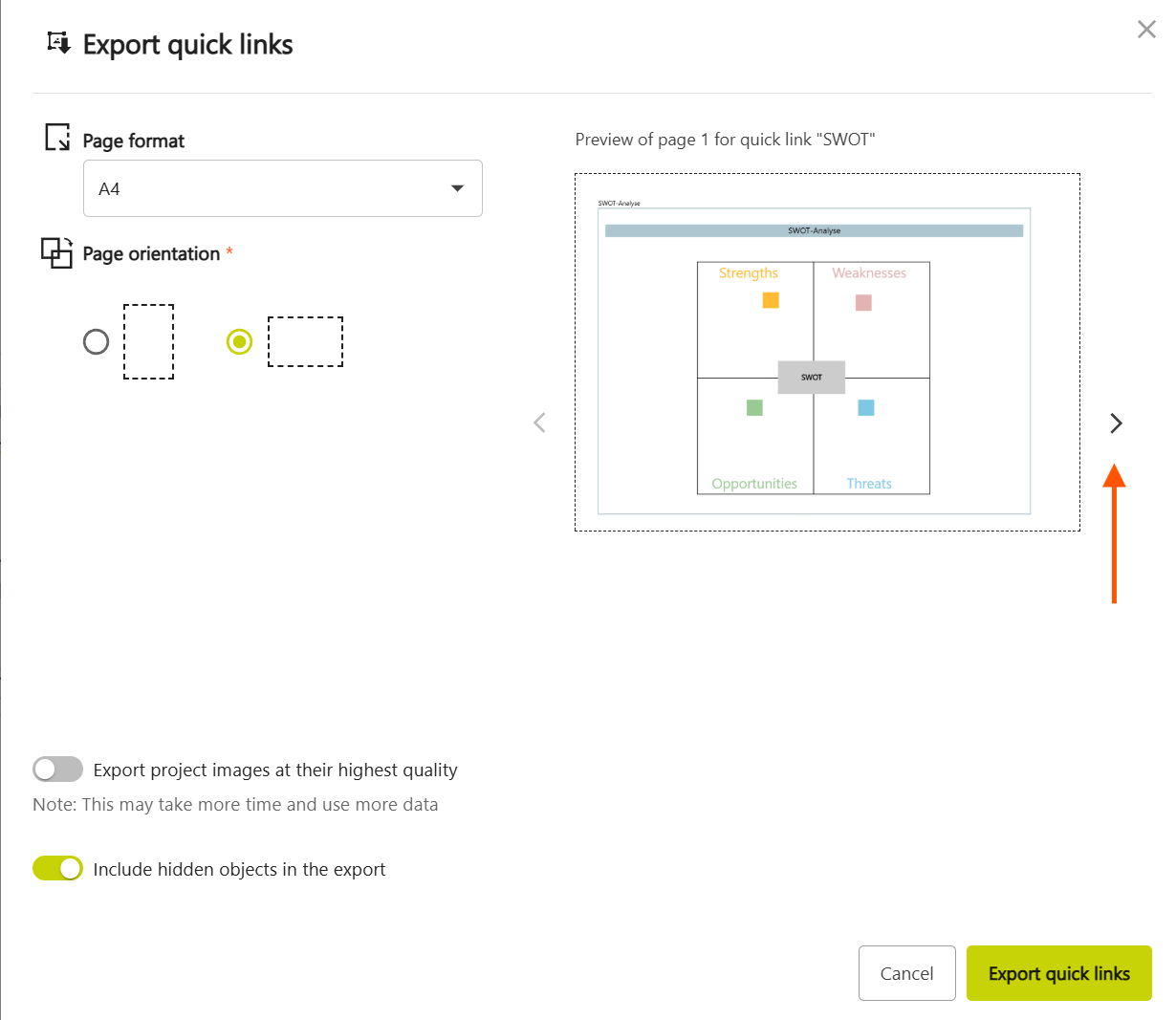 Choose the page size for the export (for example A4). This determines how each Quick Link is placed on a page.