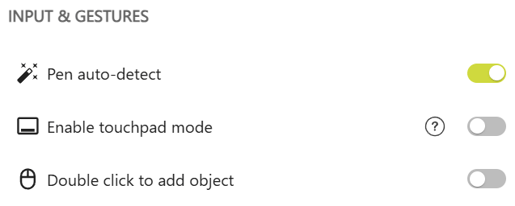 Automatically detects a pen. When enabled, Collaboard distinguishes between pen and mouse input. When disabled, the pen behaves like a mouse. - Enable touchpad mode
