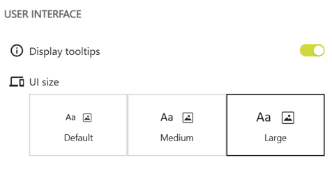 Adjusts the size of interface elements. Choose between Default, Medium, or Large depending on your screen and preference.