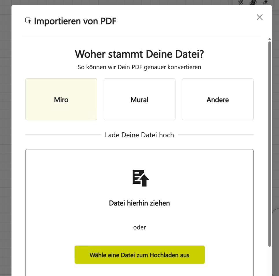 Lade die exportierte Miro-Vektordatei (PDF) von deinem Computer hoch.