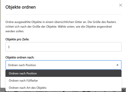 Anschließend öffnet sich ein Dialogfenster, in dem Du festlegst, wie die ausgewählten Objekte angeordnet werden sollen.